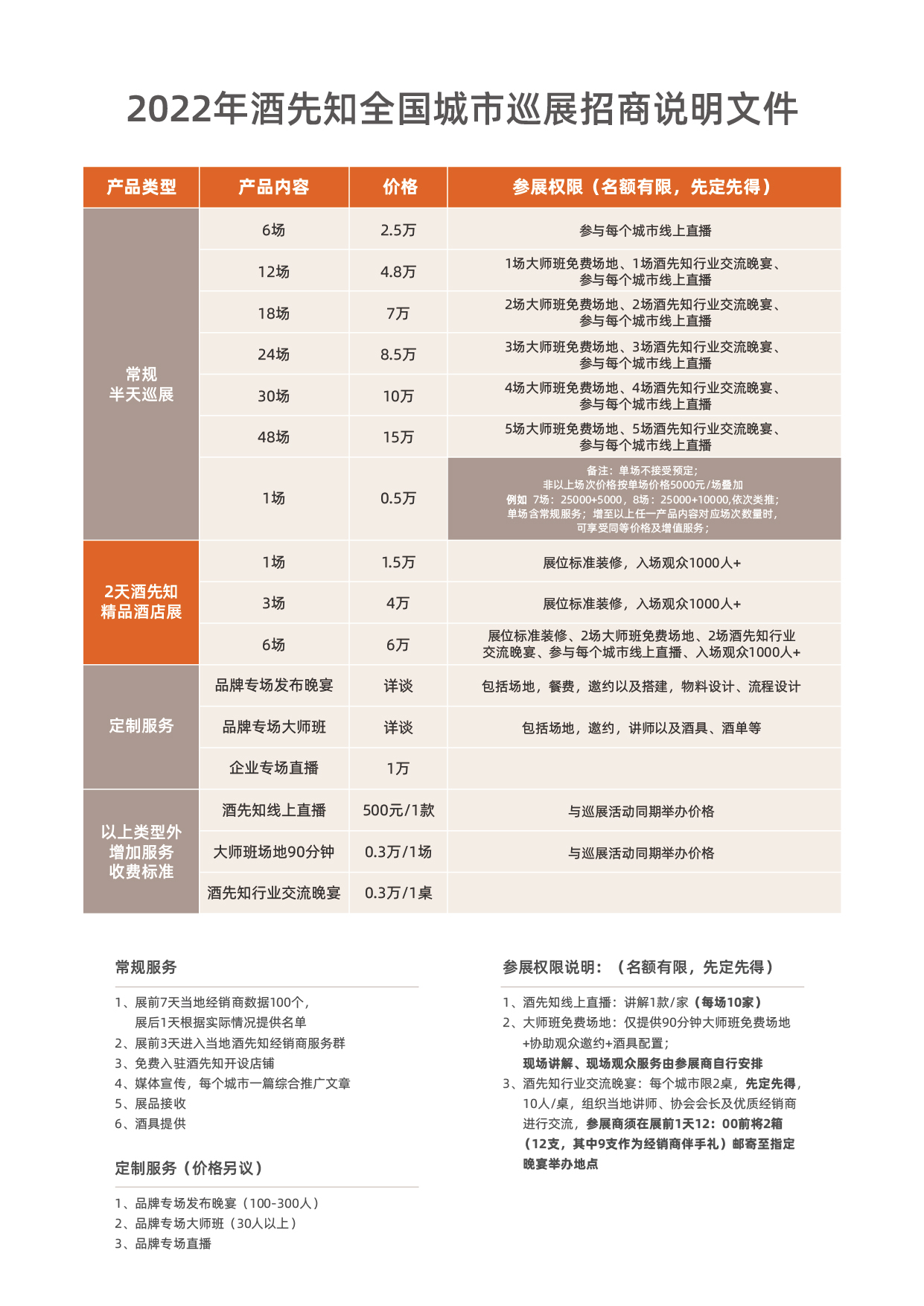 为更加高效服务上游展商及下游经销商,为客户创造最大价值,腾博tengbo9885登录公司充分发挥酒先知推广平台的强大线上功能,顺应形势发展,实施强强联合,创新推出了以全国50余座经济发达城市巡展为主导、以线上365日不间断展出为主体的双线营销,为城市巡展项目提供了可借鉴的“腾博tengbo9885登录模式”,引领了行业的发展方向。