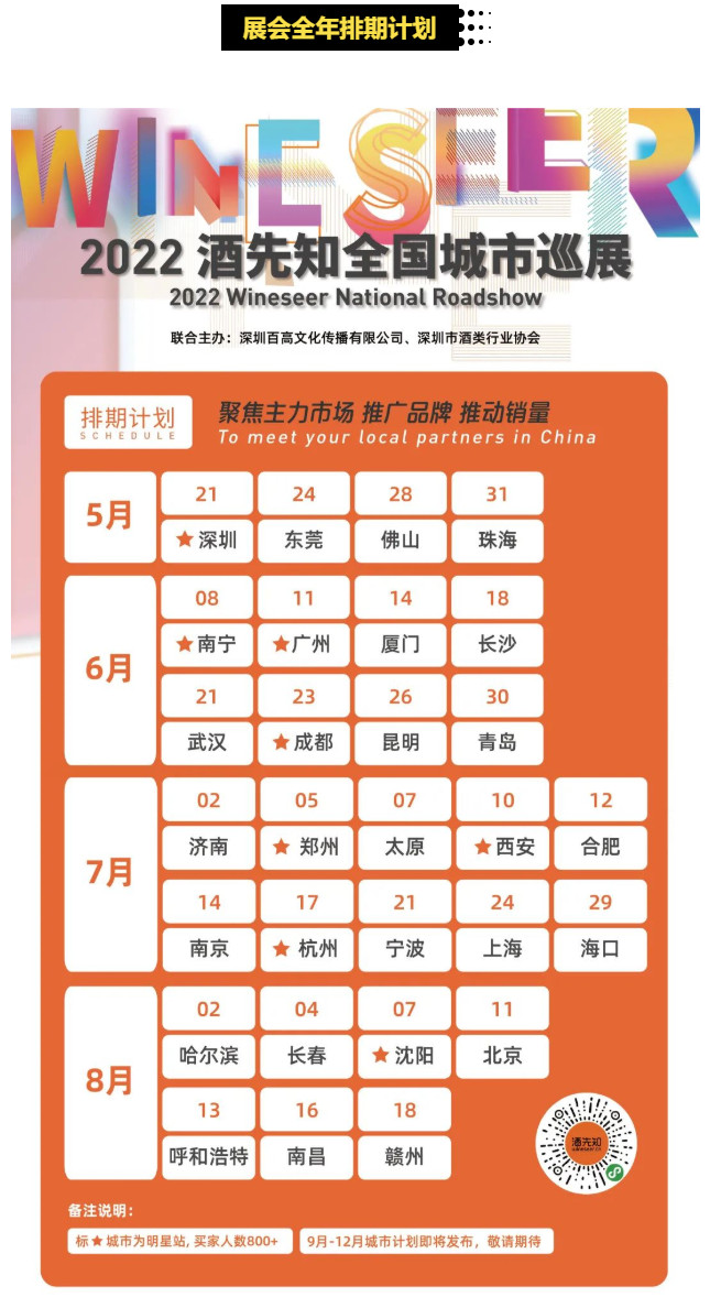而今,与时偕行的酒先知全国城市巡展,每年专注于深耕全国50余座经济发达城市,触达5万+优质经销商,已成为国内最具有行业号召力的酒展项目之一,是众多酒类上下游客户拓展渠道、对接商机的首要选项。